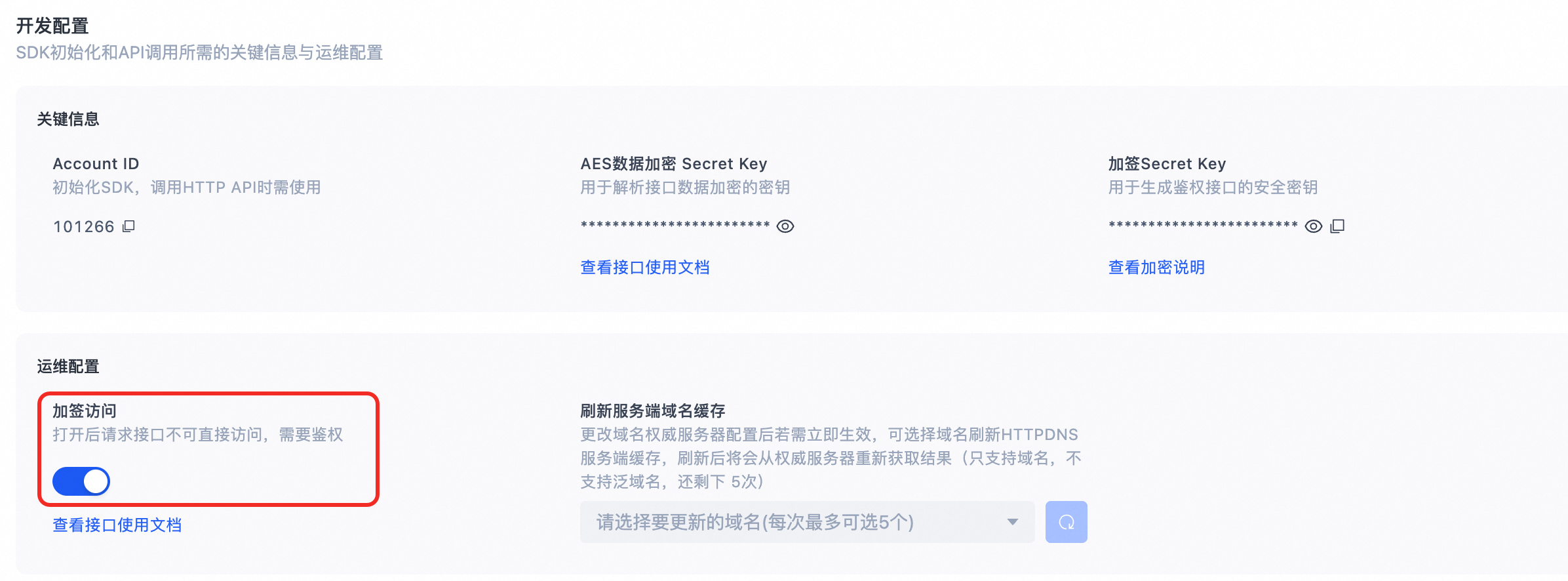 });步骤五:检查HTTPDNS控制台是否启用了加签访问: