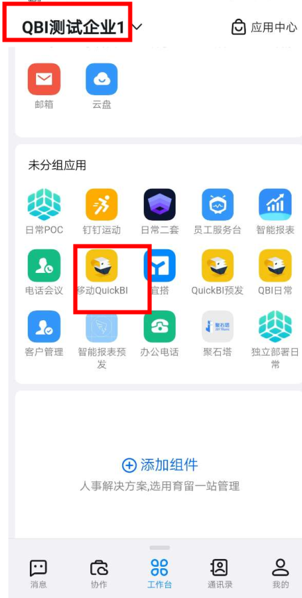 - 如果是通过钉钉接口授权将钉钉账号加入的Quick BI组织,需要检查移动端访问时选择的机构是不是正确,需要选择的是开通钉钉微应用的组织: