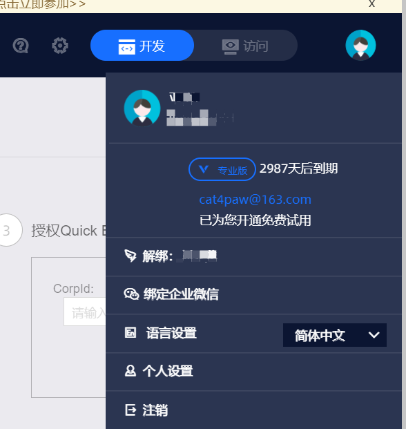 - 如果客户是阿里云账号添加的Quick BI组织机构,移动端访问出现该问题,可以在PC端检查是否和钉钉账号解绑导致:
