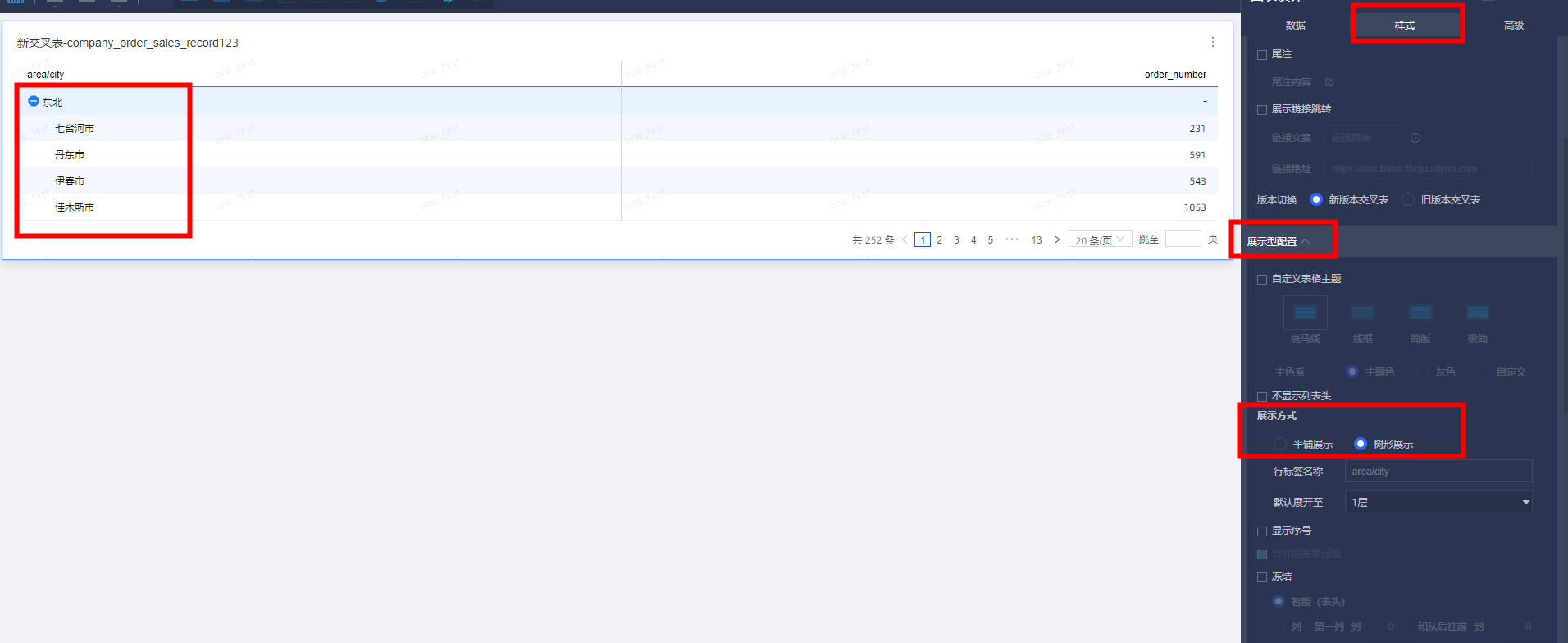 新交叉表配置树形展示就可以实现旧版本透视表树形展示功能。