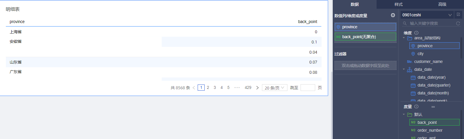 Quick BI的表格如何展示明细数据