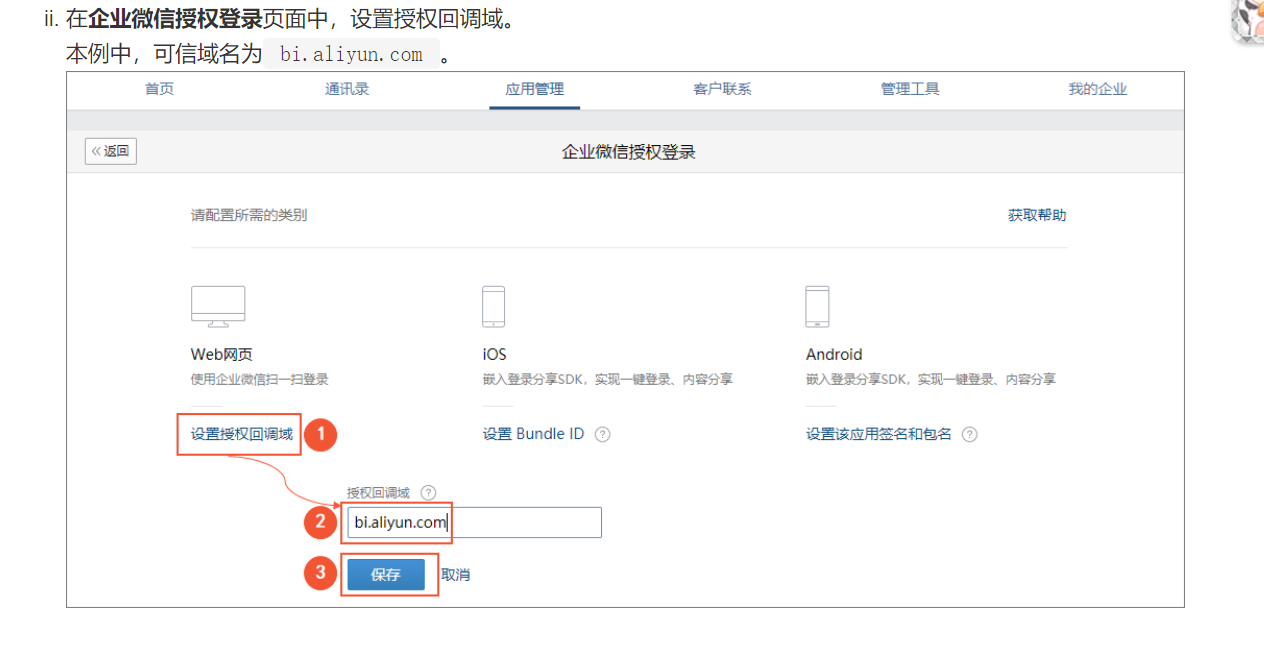 Quick BI产品文档参考>移动端>在企业微信中绑定Quick BI微应用