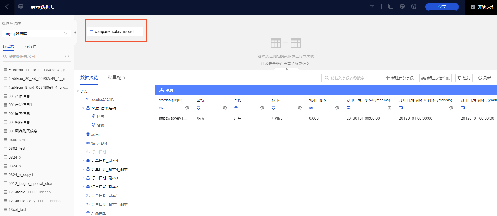 原表里增加了字段,已创建数据集不需要重新做,只需要把新增字段添加进来即可: