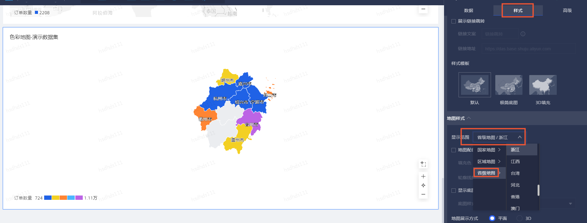 Quick BI地图组件如何单独展示某个省份的数据