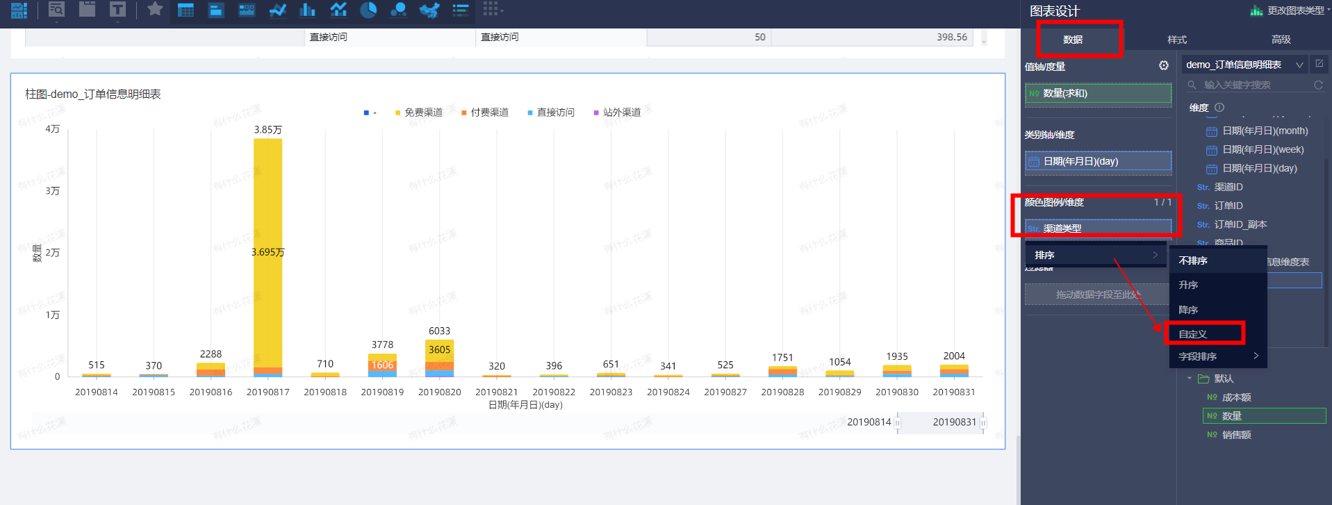 本文介绍如何设置图表指标自定义排序。