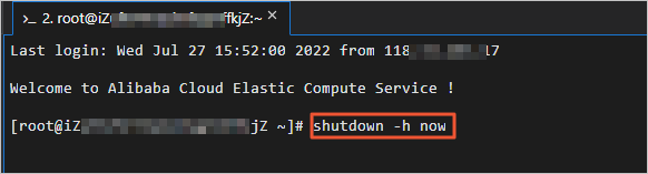 返回如下弹窗,表示远程连接已断开,您的ECS正在关机中, 请您稍等一分钟,ECS实例将完全停机,您也可以登录ECS控制台查看ECS实例是否停机。