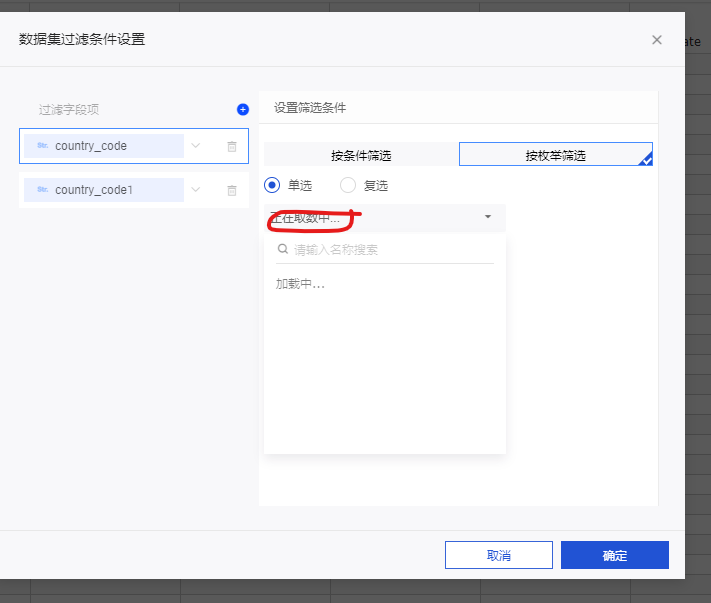 新建的数据集进行了多个表的关联,然后点过滤进行过滤条件的设置,按枚举筛选的时候,数据一直在加载,长时间未返回结果。