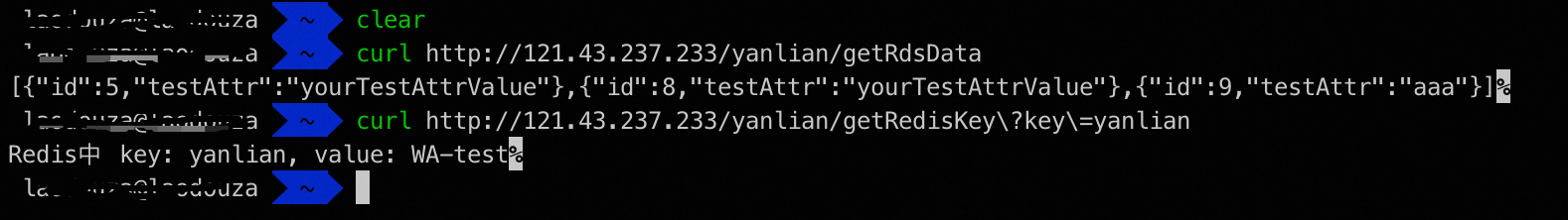 在步骤2中可以从控制台确认底层数据库均已按照预期切换了备可用区,此时通过curl指令来获取数据库中的数据: