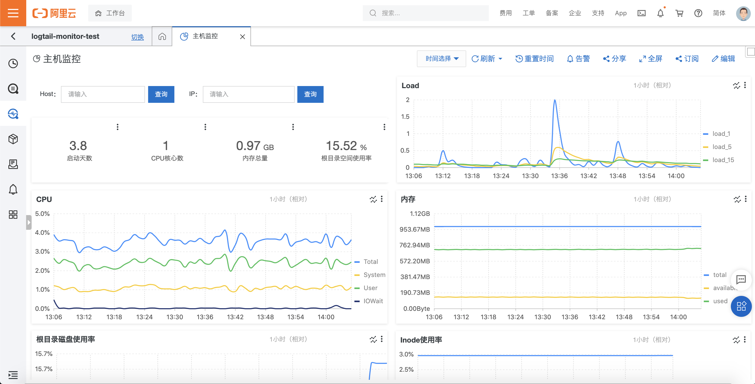 主机监控 | logtail采集 | 支持CPU、Mem、Disk、Net、System等相关指标采集链接 | |