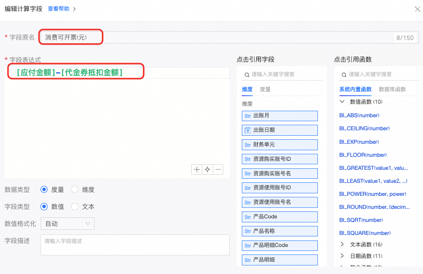 case when (BI_SUM([目录总价(元)])>0) then sum([目录总价(元)]-[优惠金额(元)])/BI_SUM([目录总价(元)]) else 0 end