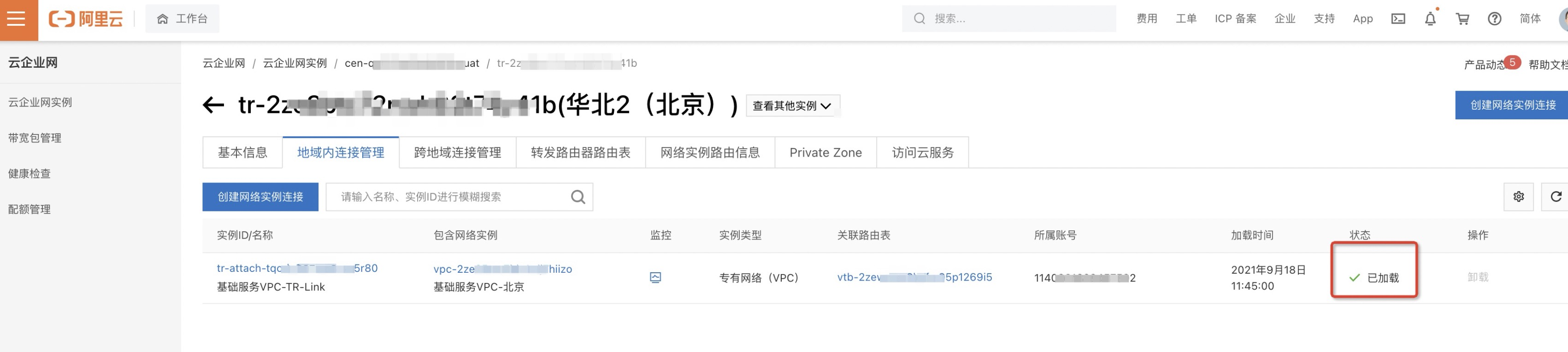 配置流程和账号1一样,分别创建对应的VPC、CEN,并把VPC加入CEN中,保证账号2内的内网路由互通。