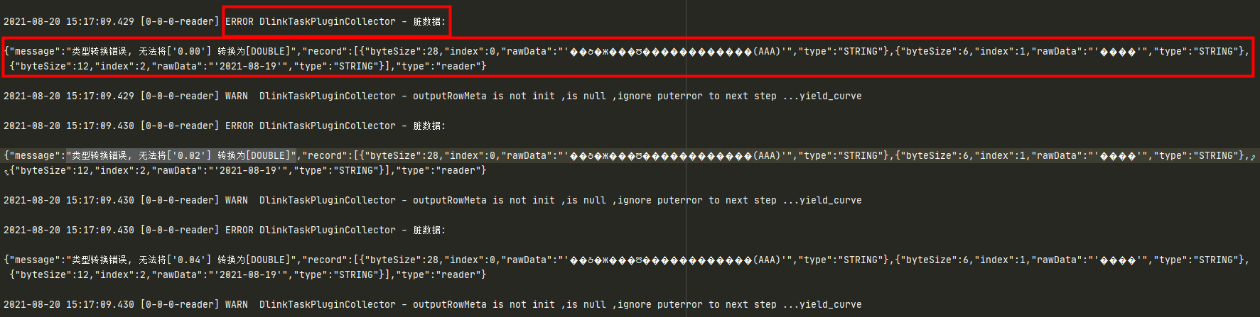 集成任务同步失败报错:脏数据: "类型转换错误, 无法将['0.02'] 转换为[DOUBLE]"