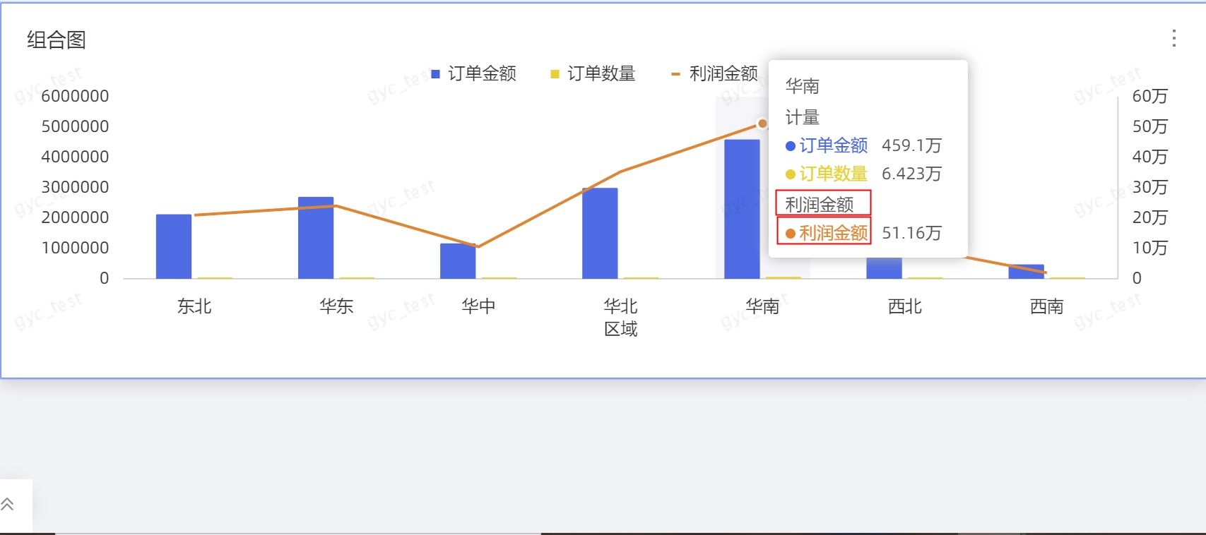 在使用组合图过程中发现利润金额展示重复,如下图所示: