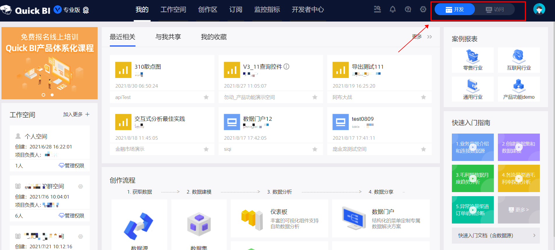 本文介绍Quick BI首页两种模式:开发模式和访问模式。