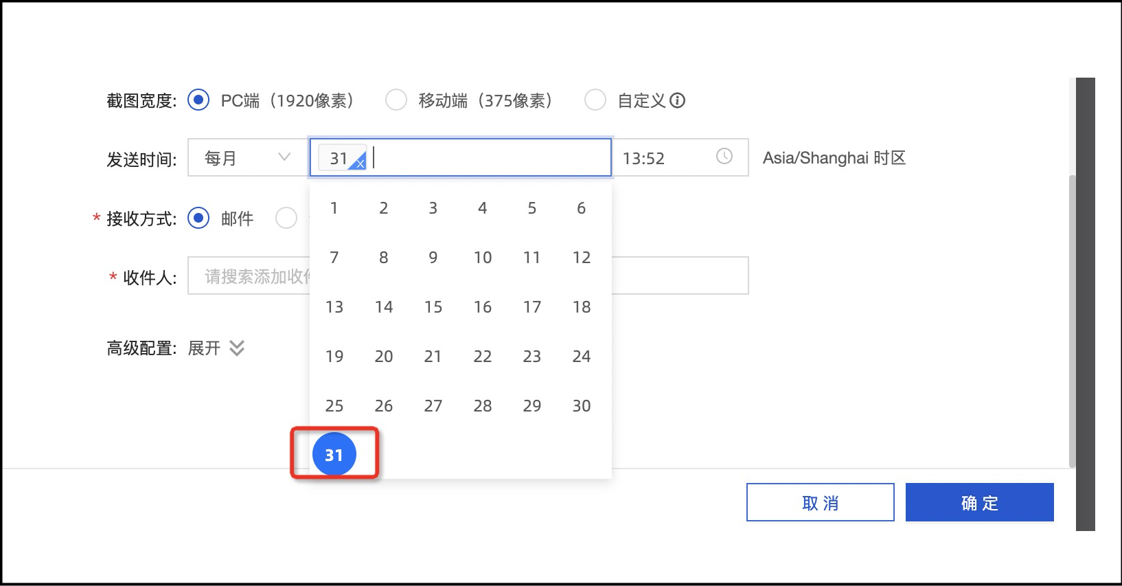 Quick BI订阅功能设置每月31号发送的任务,碰到只有30天的月份的执行情况
