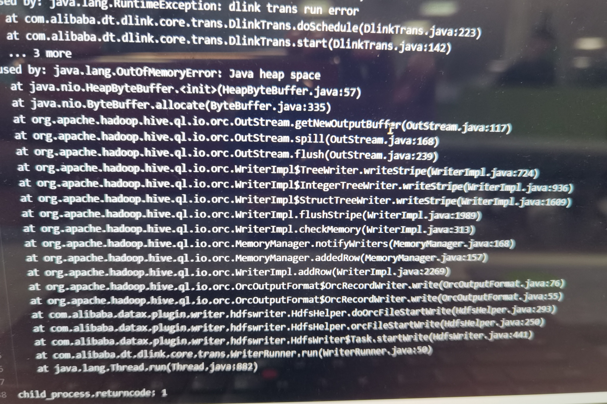 试跑数据集成中的数据同步时候发现试跑报错,内存溢出。