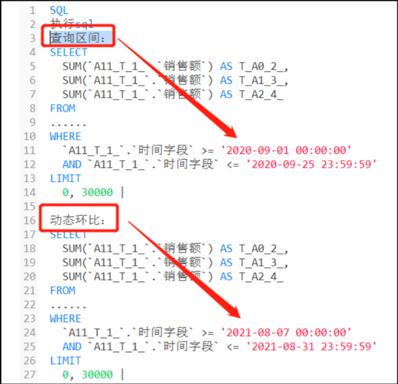 动态环比是按照筛选条件选定时间区间的日期天数与之前相邻的同样数量的天数做对比实现环比。