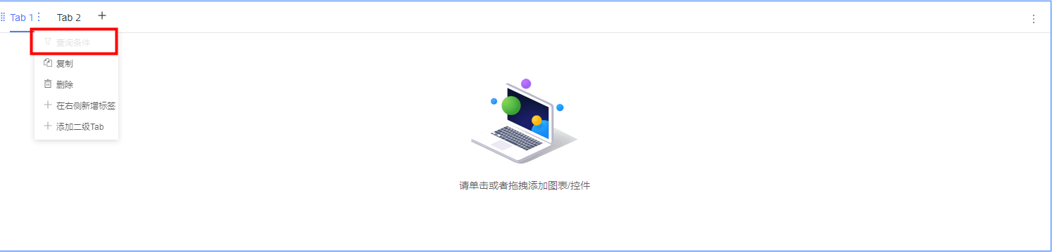 Quick BI新建tab组件的查询条件是灰色的,无法添加查询条件。