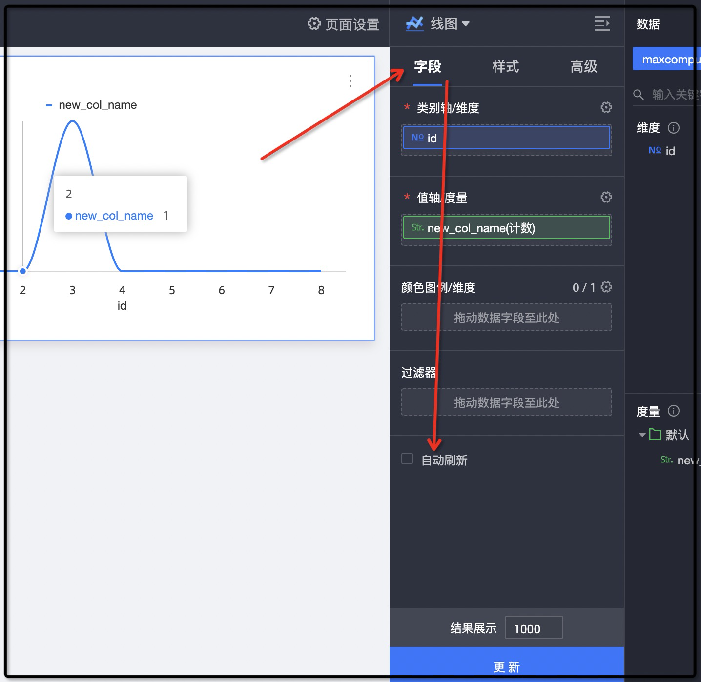 2.1.如果高级设置没有找到自动刷新,点击图表>字段>自动刷新。