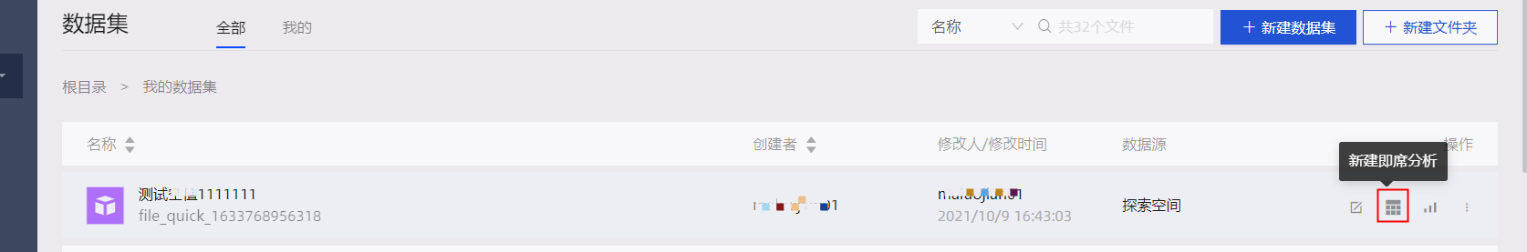 1.Quick BI首页>工作空间>数据集。
