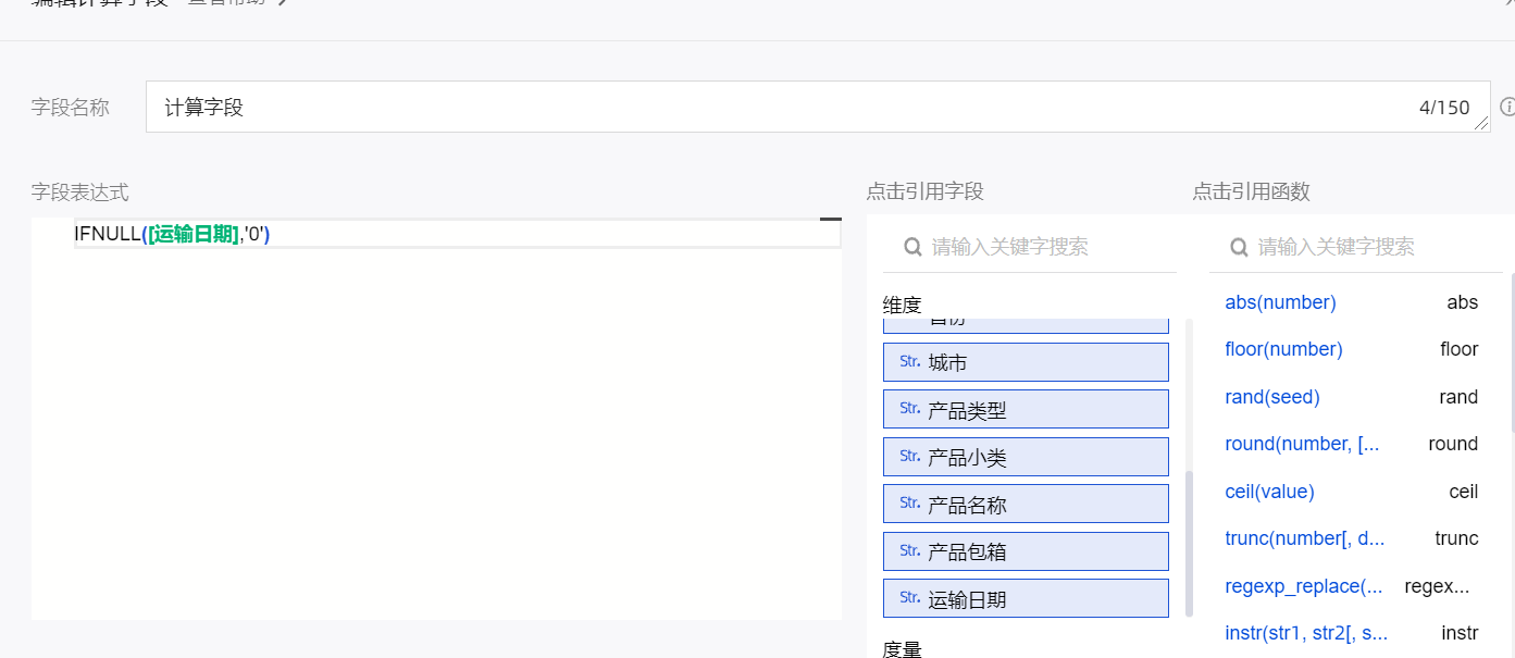 Quick BI创建计算字段报“IFNULL' 不是可以识别的 内置函数名称'“ 错误