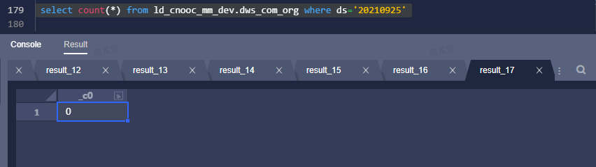 Dataphin汇总逻辑表可以查询到数据,但是count统计为0。