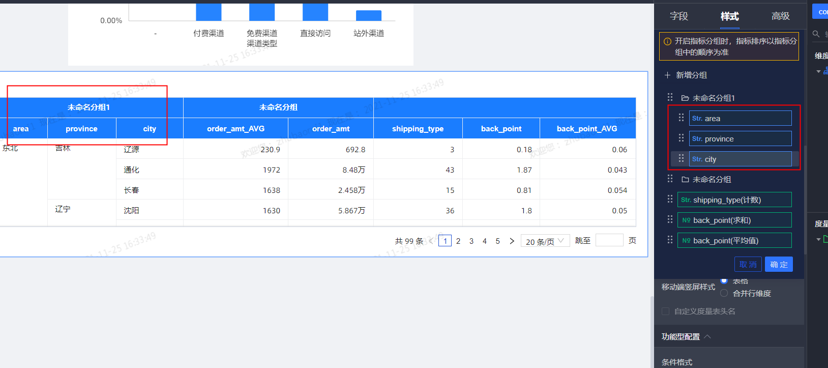Quick BI仪表板新交叉表表头合并,包括度量和度量之间,维度和维度之间,度量和维度之间。