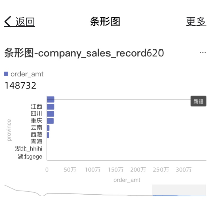 Quick BI中条形图有缩略轴时,移动端默认展示最下方的数据。