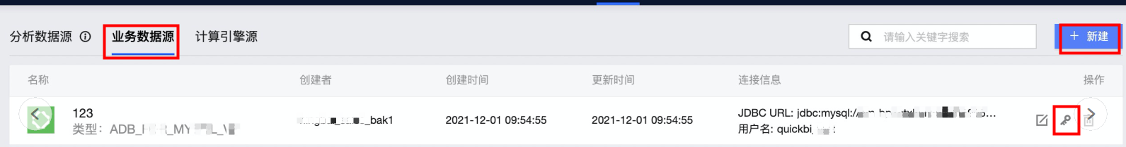 当前用户没有业务数据源的创建权限,所以看不到创建按钮入口。