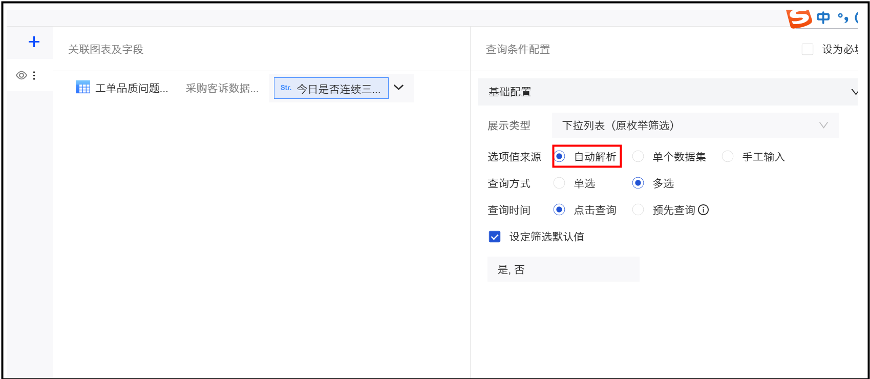 本文主要描述了图表内的查询控件设置完筛选查询,并按平铺展示,点筛选项时筛选项消失的解决方法。