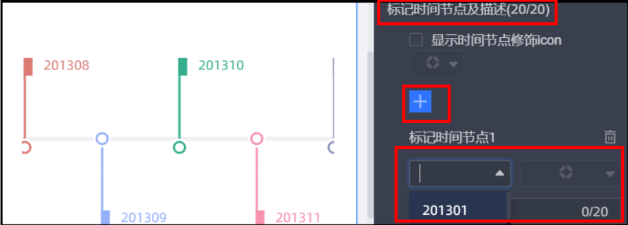 - 在样式设置里,点击图标样式下的标记时间节点及描述,可手动配置需要显示的时间节点。