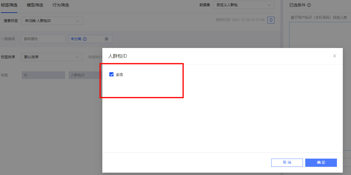 Quick Audience受众圈选某个标签字段值时只能勾选“全选”,不能选择部分值是什么原因?