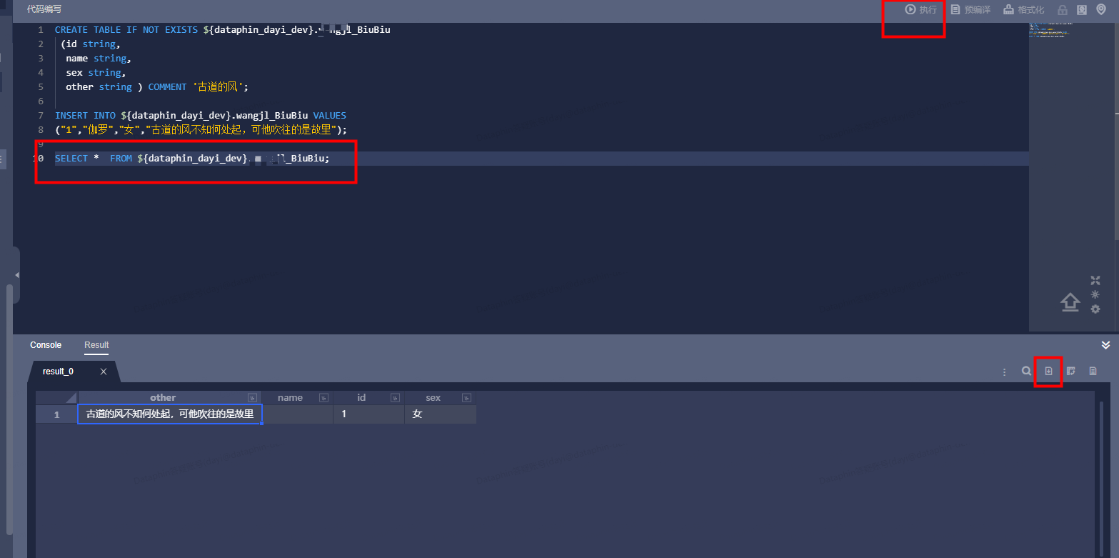 创建即席查询或者数据处理的MaxCompute_SQL任务,然后创建SQL语句查询表中的数据,点击执行,等执行成功以后,在Result栏可以点击下载按钮。