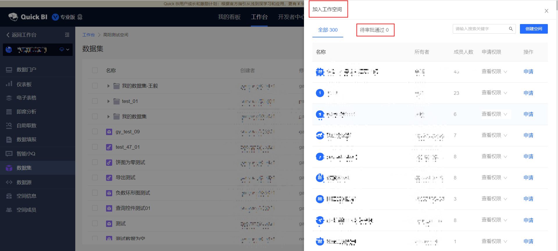 Quick BI的消息中心中的我的审批只有空间创建者才有审批记录