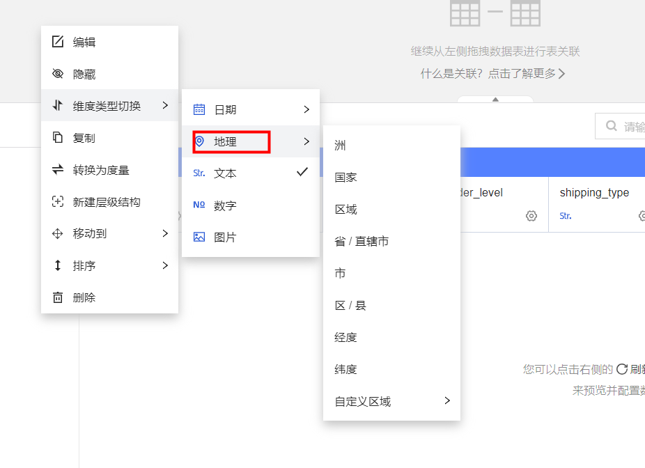 需要在数据集页面,将此字段类型修改为地理中对应的层级。