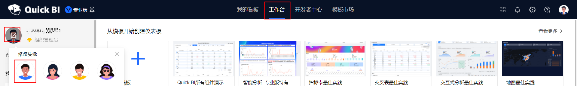 Quick BI中如何修改用户的头像