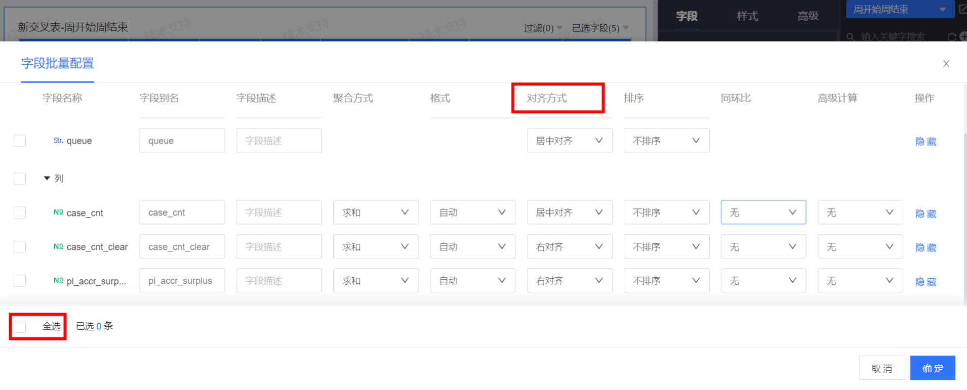 创建表格类图表时,如何配置使字段居中展示呢?方法如下: