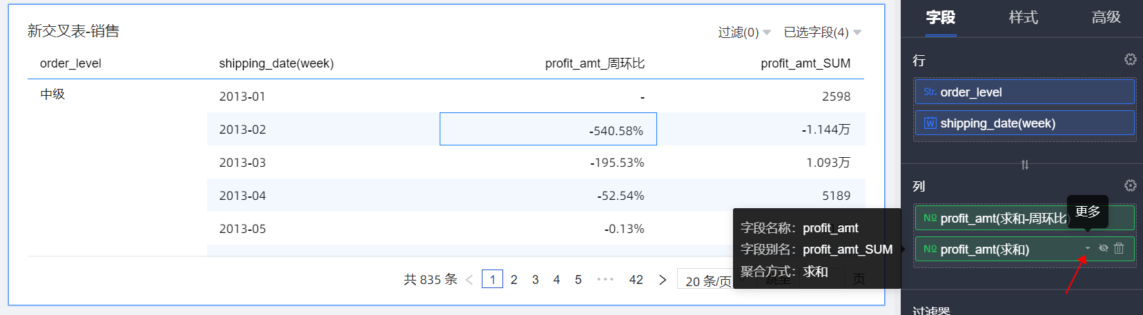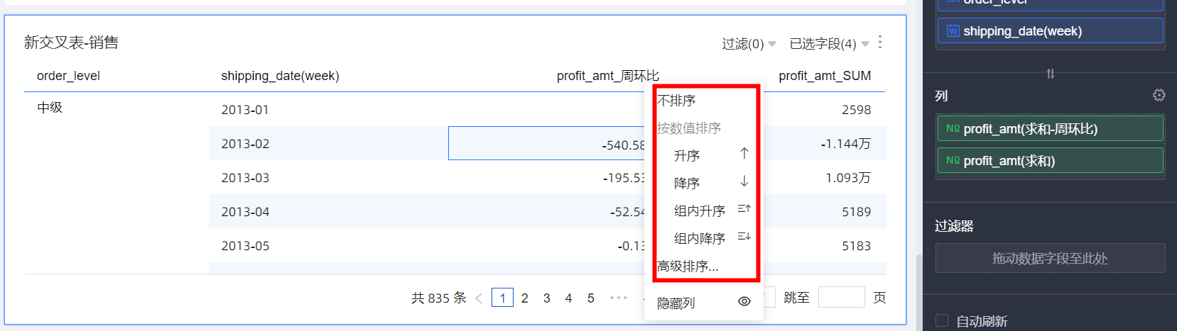 - 如需对图表字段进行排序,且每次打开都是排序的状态,需要在拖拽字段处进行排序设置。
