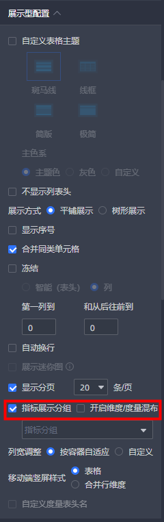 指标展示分组开启了维度度量混布。如果开启了维度度量混布则不允许拖拽。