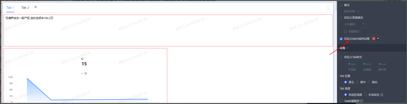Quick BI 在页面设置中开启所有组件的边框后Tab组件内的图表没有边框