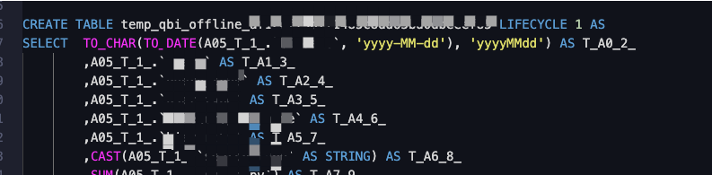 带有temp_qbi_offline字样的表: 自助取数创建取数任务后临时建的表,用于在MaxCompute下载数据。