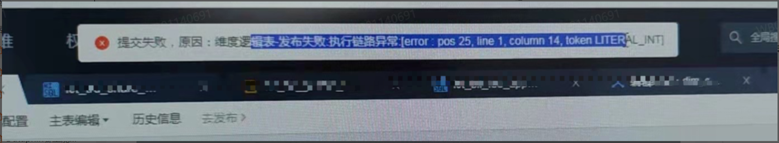 Dataphin维度逻辑表修改之后提交的时候报执行链路异常错误,错误情况如下: