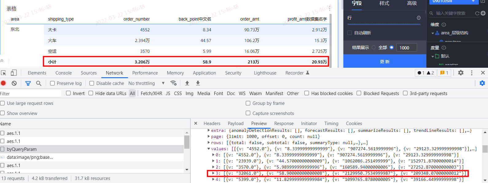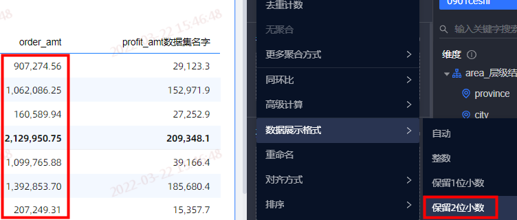 小计是自动按照数值大小进行适配的。如果想统一精度的话,就要对字段设置一种格式化。