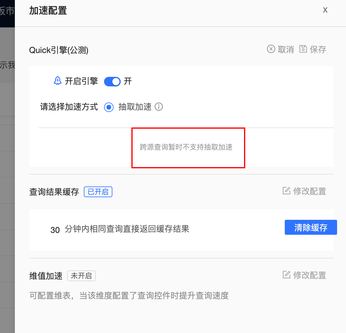 数据集‘加速配置’需要在‘配置面板-Quick引擎(公测)-实时加速’配置。