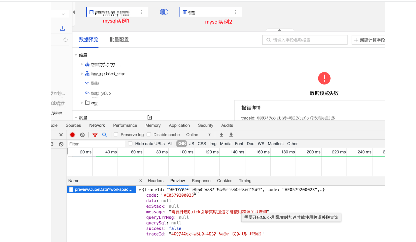 Quick BI数据集跨源数据集报错“需要开启Quick引擎实时加速才能使用跨源关联查询”,但开启加速配置失败