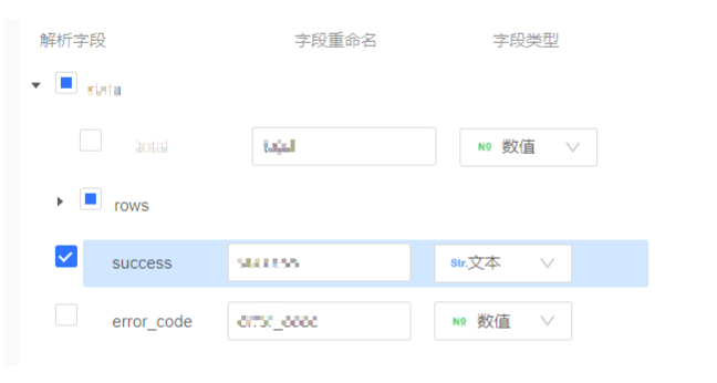 勾选准确的,相同层级的字段;如下图,rows与success不属于相同层级字段,同时勾选会导致解析出错。