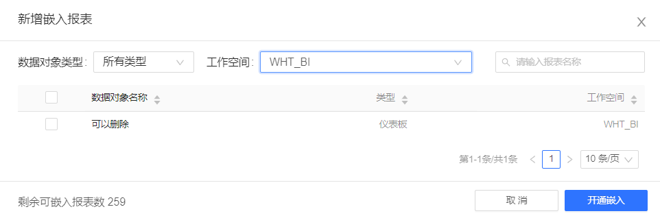 Quick BI新增嵌入报表时,有部分报表在对象列表中未显示