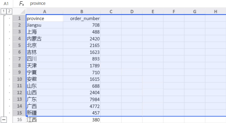 Quick BI怎么把电子表格数据做成折叠展开的效果?例如下图,把上面两行数据做成隐藏,点第三行的一个加号才展开显示。