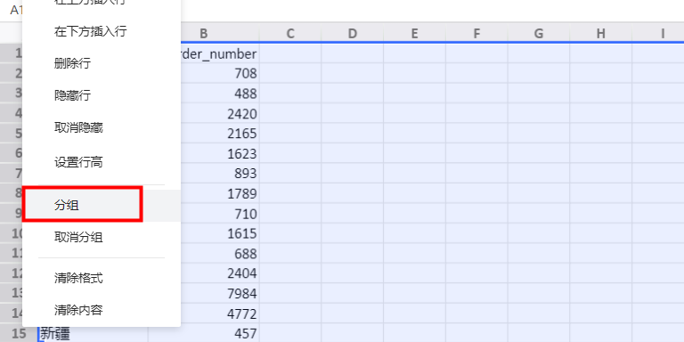 使用旧版电子表格,有数据分组的功能。在最左侧的序号列上,拉取需要折叠的行,右键单击“分组”,即可将选中数据设置为一个分组。再点击“-”或“+”,就能实现数据的折叠与展开。
