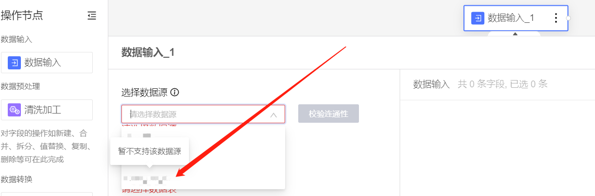 在数据准备的数据节点中,不支持选择MySQL数据源。